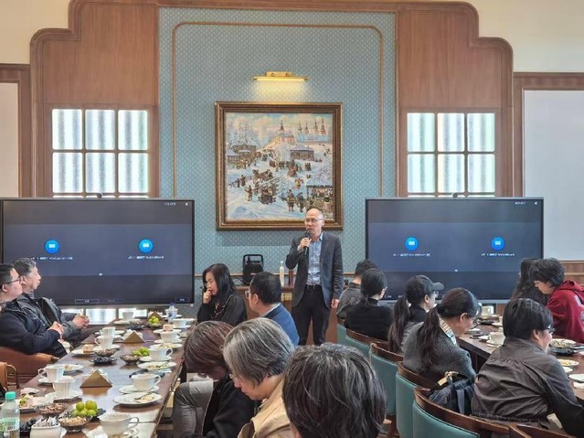 在交流座谈环节,华为研发中心相关负责人向师生系统介绍了公司的发展历程、核心业务布局及技术创新成果。从通信技术的迭代突破到智能终端的生态构建,从研发投入的持续加码到“以客户为中心”的价值坚守,负责人的讲解让在场师生深刻体会到华为作为科技企业的责任与担当。郑春荣代表外国语学院师生感谢华为研发中心的热情接待和精心安排。他结合学习党的二十届四中全会精神体会,深刻理解“十五五”规划建议中有关国际传播、区域国别等方面的战略需求,分享了个人科研实践中外语学科如何与科技企业融合,指出外国语学院不仅要培养语言功底扎实的人才,更要引导学生立足时代需求,将语言优势与科技发展相结合,希望以此次参观为契机,进一步推动双方在人才联合培养、学术交流等方面的合作。