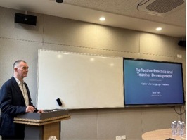 随后,Steve Mann以轻松而富有启发性的语言展开了他的主题报告。他首先阐释了“反思性实践(Reflective Practice)”的核心内涵——即教师在教学过程中通过自我观察、数据分析与同行交流,实现持续的专业成长。Mann指出,“教育的最高馈赠,不是知识本身,而是反思与提问的习惯”。他认为,无论教学对象是本科生、研究生还是职前教师,教育的根本任务都是引导学习者形成自主反思与批判性思维的能力。他通过课堂实例说明,教师应在教学过程中实时感知学生反应,适时调整教学节奏与方法,以提升课堂互动与学习效果。