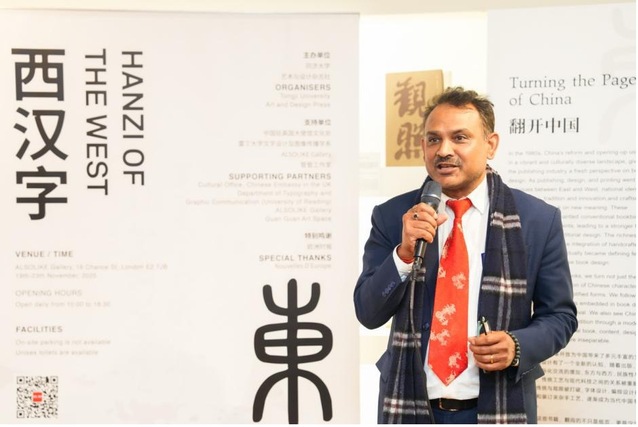 英国巴斯市前副市长、巴斯大学中英文语言翻译专业主任余德烁教授则以“黄金桥梁”喻汉字之于东西方文明。他指出,“作为一名汉学家和翻译教育者,对我来说,汉字不仅是研究对象,更是连接两种思维方式的桥梁。”他提到,“此次展览以精巧策划展现文字如何在日常生活、数字媒介、跨文化传播中不断演变与生长,成为中英观众对话与联结的视觉触点与情感共振。”他还认为,本次展览极具启发性,并衷心祝愿它能成为许多人了解中国、爱上汉字的崭新起点。