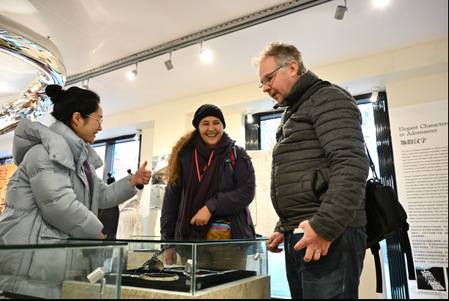 英国巴斯市前副市长、巴斯大学中英文语言翻译专业主任余德烁教授则以“黄金桥梁”喻汉字之于东西方文明。他指出,“作为一名汉学家和翻译教育者,对我来说,汉字不仅是研究对象,更是连接两种思维方式的桥梁。”他提到,“此次展览以精巧策划展现文字如何在日常生活、数字媒介、跨文化传播中不断演变与生长,成为中英观众对话与联结的视觉触点与情感共振。”他还认为,本次展览极具启发性,并衷心祝愿它能成为许多人了解中国、爱上汉字的崭新起点。