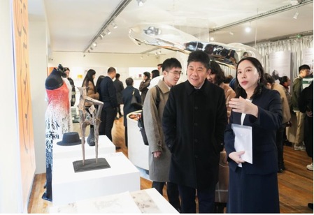 同济大学外国语学院院长吴赟教授带领李立言公参观看展品