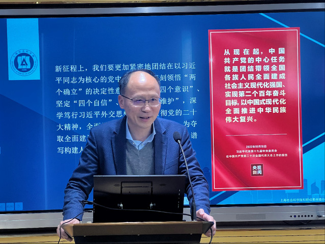 4月3日下午,外国语学院党委中心组(扩大)在汇文楼518举行专题学习,邀请上海社会科学院国际问题研究所所长、研究员、博士生导师王健作题为《学习贯彻全国两会精神 书写中国特色大国外交新篇章》的主题报告。此次专题学习由外国语学院党委副书记、院长吴贇主持,学院党委中心组成员、各支部书记和委员等参加本次学习。