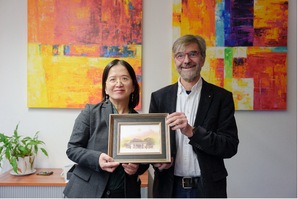伍慧萍教授代表同济大学德国研究中心赠与德国亚琛工业大学语言与传播研究所礼物
