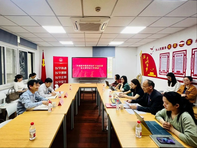 4月19日下午,外国语学院党委于同文楼216室召开扩大会议暨党支部书记工作例会,党委书记郑春荣主持会议并作动员讲话。校主题教育领导小组办公室第六巡回指导组组长杨正宏、组员司惠文出席会议,并作指导讲话。