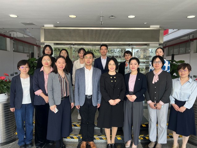 5 月 9 日上午,北京大学医学人文学院副院长郭莉萍教授、教学科研办主任谢虹研究员、医学语言文化系副主任乔玉玲副教授、李芳副教授等一行八人到访我院,围绕学科交叉研究、医学人文教研、医学英语课程等进行交流,并前往我院开设的学术英语(医学方向)、老年语言学等课程现场听课。同济大学外国语学院党委副书记黄立鹤副教授、副院长胡琪副教授、办公室主任王毅、学科建设协理董菁副教授、骨干教师代表王婷副教授、教学秘书杨曜婷等参加了会谈。会谈席间,吴赟院长、日语系刘晓芳主任与郭莉萍副院长进行了短暂交流。