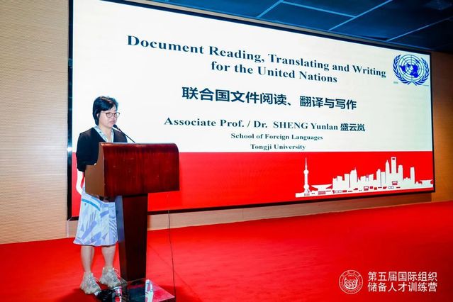 同济大学外国语学院盛云岚副教授介绍了联合国文件阅读、翻译和写作的基本方法,鼓励同学们尝试了解和体验多语种的思维逻辑。
