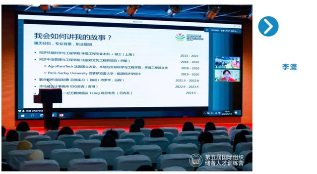 此外,训练营还邀请了已经前往国际组织实习的学生来分享工作经验。同济大学2022届汽车学院硕士毕业生殷骏、同济大学2021届环境科学与工程学院硕士毕业生李潇、同济大学2022届马克思主义学院博士毕业生梁骁分别分享了各自在国际组织实习的经历与经验感悟。