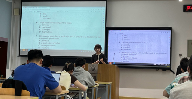 5月18日,在《英语泛读与评论》课程教学中,岳剑锋老师围绕政治主题展开,讲授政治概念内涵的复杂性与多变性,阅读材料来自英国杂志《经济学人》的最新一期的每周新闻,在阅读过程总结其中暗含的政治立场和态度立场,指出部分英语媒体报道并非公正客观。