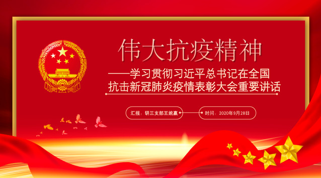 随后,通过德语系博士王婉赢同学的精心分享,支部成员共同学习了习近平总书记在全国抗击新冠肺炎疫情表彰大会上发表的重要讲话。讲话中,习近平总书记充分肯定了我国抗疫斗争取得的重大战略成果,全面回顾了抗疫斗争的不平凡历程,深刻概括了伟大抗疫精神。