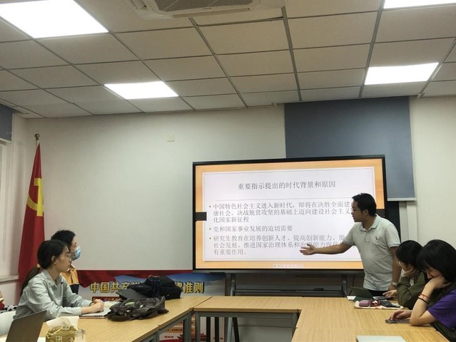 全体党员集体学习了习近平总书记关于研究生教育、抗击“新冠”肺炎和抗日战争胜利75周年的讲话。首先,由日语系博士刘绍晨同学分享习近平总书记对研究生教育工作作出的重要指示。习近平指出,研究生教育在培养创新人才、提高创新能力、服务经济社会发展、推进国家治理体系和治理能力现代化方面具有重要作用。