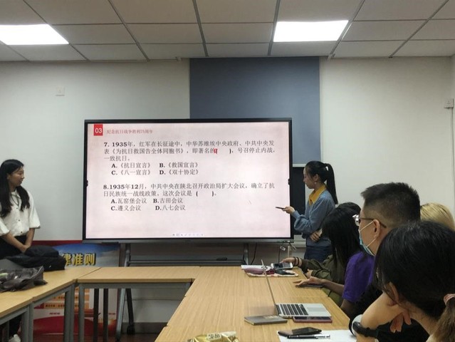 接着,德语MTI专业的张旭和张娴同学通过PPT演示、视频分享、知识竞答等形式组织开展了新时代弘扬抗战精神相关内容的学习。与会同志们共同观看了《地道战》经典片段,并积极参与知识竞答,形成了良好的学习氛围。