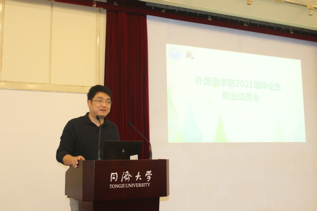 为引导学生树立正确的择业观与就业观,进一步了解就业形势、明确就业方向,2020年10月13日下午,外国语学院2021届毕业生就业动员会在逸夫楼二楼报告厅举行。外国语学院院长吴贇、同济大学就业指导中心主任方雅静、学工办主任李小蜜、就业指导中心肖斌文、毕业班辅导员李伟伟及2021届毕业生出席会议。学院党委副书记徐伟铖主持会议。