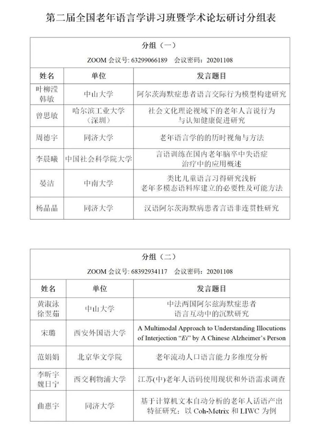为培养我国老年语言学研究队伍,同济大学老龄语言与看护研究中心定于2020年11月8日在线上ZOOM平台举办第二届全国老年语言学讲习班暨学术论坛。现正式公布会议日程(点击图片查看),欢迎广大师生免费参会!