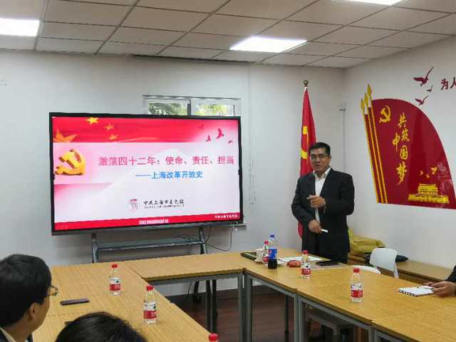 为落实关于进一步推进“四史”学习走深走实的工作要求,10月23日下午,学院党委在同文楼211开展党委中心组(扩大)专题学习活动,邀请上海市委党校研究生部副主任罗鹏部老师,做题为《激荡四十二年:使命、责任、担当——上海改革开放史》的专题辅导报告,党委书记谭晓赟主持学习活动,学院党委中心组成员、纪委委员、各支部书记、纪检委员参加学习活动。