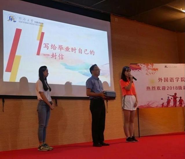 随后,来自日语系的郭彧焮同学作为2018级新生代表进行发言。曾获中国青少年作家杯征文比赛全国一等奖,在人民大会堂接受颁奖的郭同学,代表新生表达了成为一名同济外语人的激动与喜悦之情,也表达了对于同济四年本科生活的期冀:学好专业知识,丰富社会阅历,以朝气蓬勃的青春正能量书写“00”后的同济辉煌!