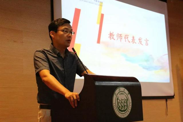 厚德载物,桃李天下,外院老师将引领2018级新生步入理想的殿堂。作为本硕博都在同济外院完成的“老学长”,教师代表黄立鹤在他的发言中对新生提出三点警醒:1.拓展宽广的视野。在充满机遇和挑战的时代,培养自己关心人类的胸怀和洞察全球的视野。2.培养杰出的思维。深刻思考,切忌用华丽的口语掩盖空浅的思想。3.树立远大的追求。追逐幸福,要将个人的追求,国家的关切,和人类命运相结合。