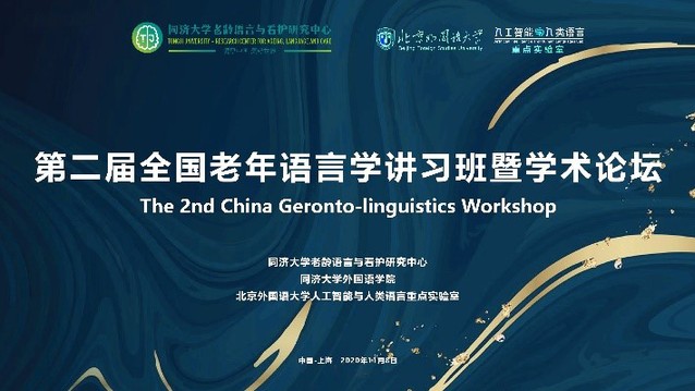2020年11月9日,由同济大学老龄语言与看护研究中心、同济大学外国语学院、北京外国语大学人工智能与人类语言重点实验室主办的第二届全国老年语言学讲习班暨学术论坛通过线上方式举行,Zoom平台与bilibili平台同步直播。来自全国各地的近300位从事老年语言学研究相关的专家、学者和同学参加了此次论坛。