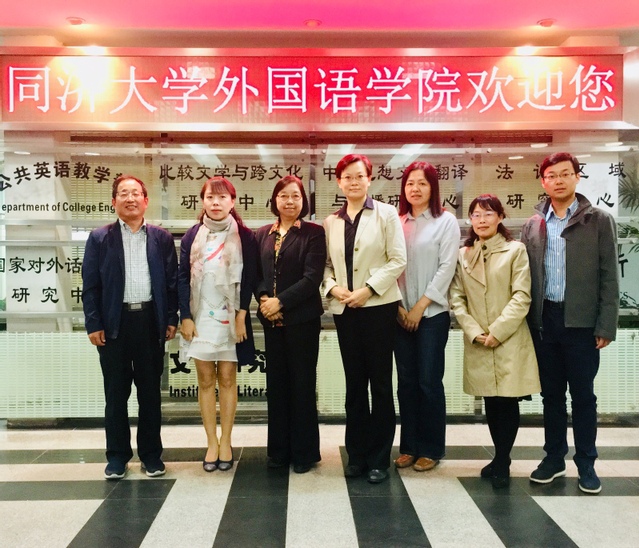 10月11日下午,华东理工大学外国语学院一行来我系调研。原华理外院副院长、全国师德模范标兵、上海市教学名师颜静兰教授,华理外院副院长赵宏副教授、英语系主任杨慧敏副教授、副主任贾卉副教授与同济大学外国语学院院长吴贇教授、英语系主任魏耀章副教授、副主任黄立鹤副教授进行了深入交流。