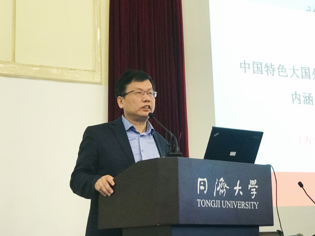 同济大学外语学院特聘教授、院长、国家对外话语体系研究中心主任吴贇以《国家对外话语能力及其提升战略:内涵与规划》为题,阐述了国家对外话语及其应用能力的内涵,剖析了能力建设中存在的问题和相应战略规划的意义,探讨了提高国家对外话语能力打造完整体系的途径,从而全面提升中国国际话语权和全球治理能力,推动构建人类命运共同体。