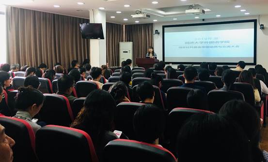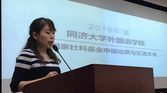 10月30日下午,同济大学外国语学院2019年度国家社会科学基金申报动员与交流大会在同文楼214报告厅顺利召开。会议邀请了湘潭大学外国语学院院长胡强教授、同济大学外国语学院公共英语教学部副教授王蓓蕾与日语系助理教授胡琪做课题申报主旨发言。胡强教授目前已完成国家社科基金青年项目一项、国家社科基金重大项目子课题一项,现主持国家社科基金重点项目;王蓓蕾副教授现主持国家社科基金项目;助理教授胡琪现主持国家社会科学基金青年项目。外国语学院副院长陈琳教授及学院各系、部教师共100余人参加了本次会议。会议由同济大学外国语学院院长吴贇教授主持。