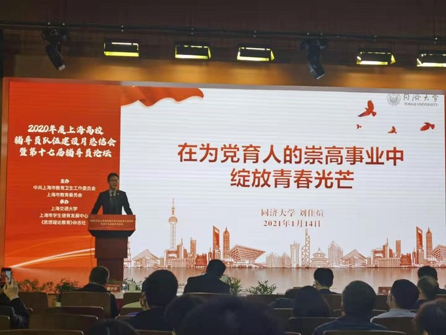 1月14日,2020年度上海高校辅导员队伍建设月总结会暨第十七届辅导员论坛在上海交通大学举行。会上对第九届上海高校辅导员素质能力大赛获奖选手进行了表彰。刘佳煊代表大赛获奖选手进行了汇报发言。