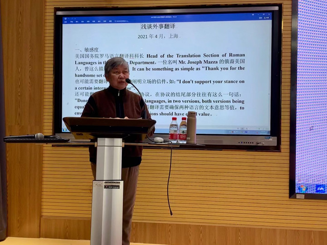 徐亚男大使拥有开阔的国际视野、深厚的外交翻译功底以及丰富的外事工作阅历。作为过去半个世纪中国外交的见证者,徐亚男大使在讲座中展示了多年来从事外事翻译的一手资料。通过大量鲜活的外事翻译实例,给与会师生讲述了从事外事翻译所需的必备素质——敏锐度,对语言的敏锐度、对政治立场的敏锐度以及对国家利益的敏锐度。徐大使的讲座不仅带来了外事翻译的经验之谈,更是以国际视野丰富了同学们的眼界,让大家深刻地感受到了外事翻译之于国家形象构建重要意义。