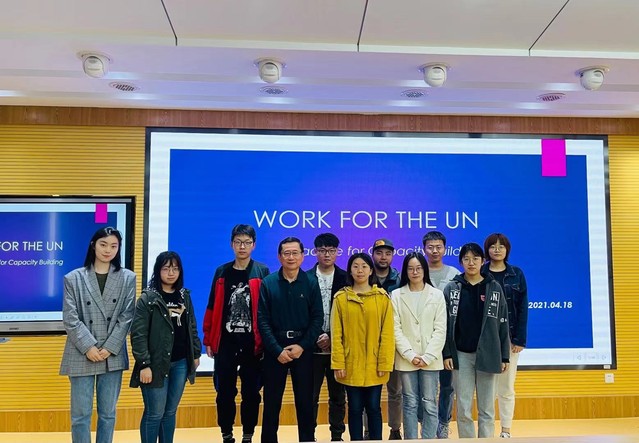 王纪元先生在课程中,以自身工作经验为出发点,穿插工作中的轶事,风趣幽默,现场氛围轻松活跃。他引用习主席的话“不能坐地论道,而要起而行之”,向我们介绍语言类专业如何进入到国际组织中服务。语言专业的学生可以辅修其他专业,学习经济、管理等,发挥自己的语言优势,深入研究一个组织或者一个领域中的一两个组织,寻找其中的工作机会。中国提出“一带一路”、“人类命运共同体”、“人类健康共同体”,为实现这些目标,需要大量的国际组织人才。外语学院的学生更要培养国际视野,利用优势,了解联合国的可持续发展目标,为实现这些目标而付出努力。