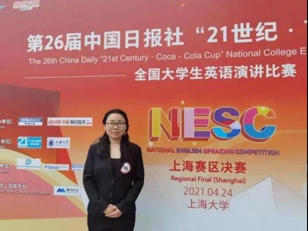 4月24日,第26届中国日报社“21世纪·可口可乐杯”全国大学生英语演讲比赛上海赛区决赛在上海大学顺利举行。大赛共分为定题演讲、即兴演讲和现场问答三个环节,本次大赛定题演讲题目为“Protecting the Blue Planet”。经过激烈角逐,由胡瑞云、周峰两位老师指导的英语系大三学生严欣安在大赛中表现卓著,以优异成绩荣获二等奖。