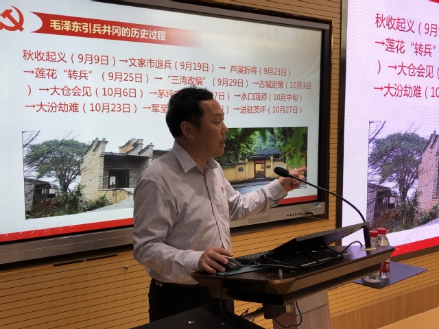 报告中,刘馆长从井冈山斗争历史回顾、井冈山斗争的历史地位和作用、井冈山精神的内涵与时代价值、井冈山斗争时期共产党人初心使命的具体体现及启示等五个方面,结合自身丰富的经历,生动形象地阐释并传达了跨越时空的井冈山精神,再次强调井冈山文化是新中国红色文化中的瑰宝,井冈山精神是中国红色精神的典型。他指出,作为党员,尤其是青年党员要坚定党的初心和使命,不断弘扬和践行井冈山精神,为服务国家富强、民族复兴和人民幸福贡献力量。