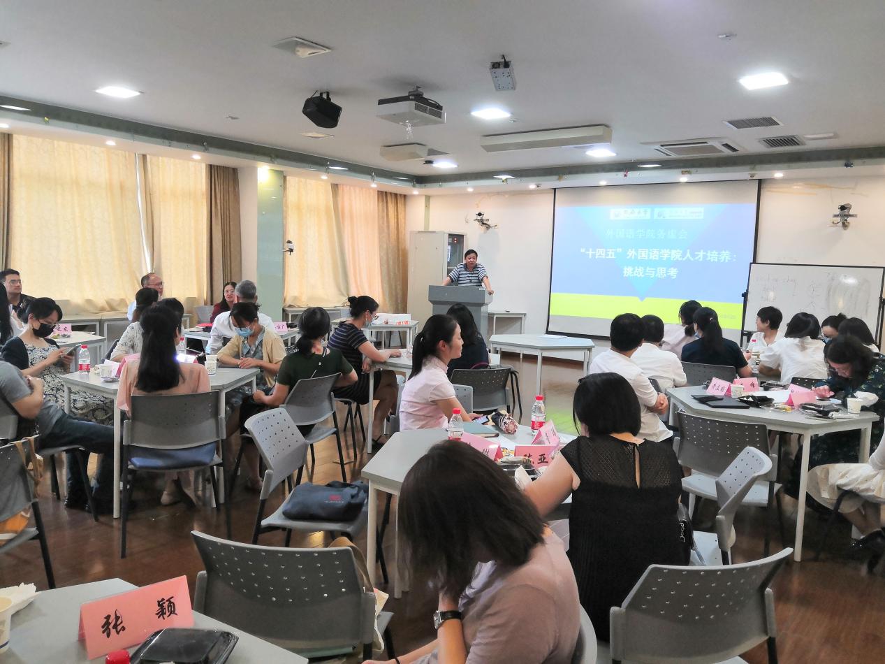 2021年8月26日,外国语学院召开2021年暑期务虚会,学院领导班子成员、各系部负责人、教师代表等40余人参会,围绕外国语言文学学科建设与发展、全面落实立德树人根本任务、推动新时代教育对外开放等展开深入讨论,凝聚共识。