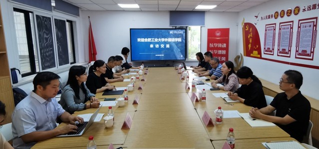 9月15日,合肥工业大学外国语学院院长唐军、副院长黄川、副院长肖薇、外语系、英语系和现代教育技术中心负责人一行8人来我院调研。外国语学院院长吴赟、副院长王蓓蕾、英语系主任杨小虎、公共英语教学部副主任李兴文、实验室主任张磊、教学协理宫华萍等学院教师代表参加交流。