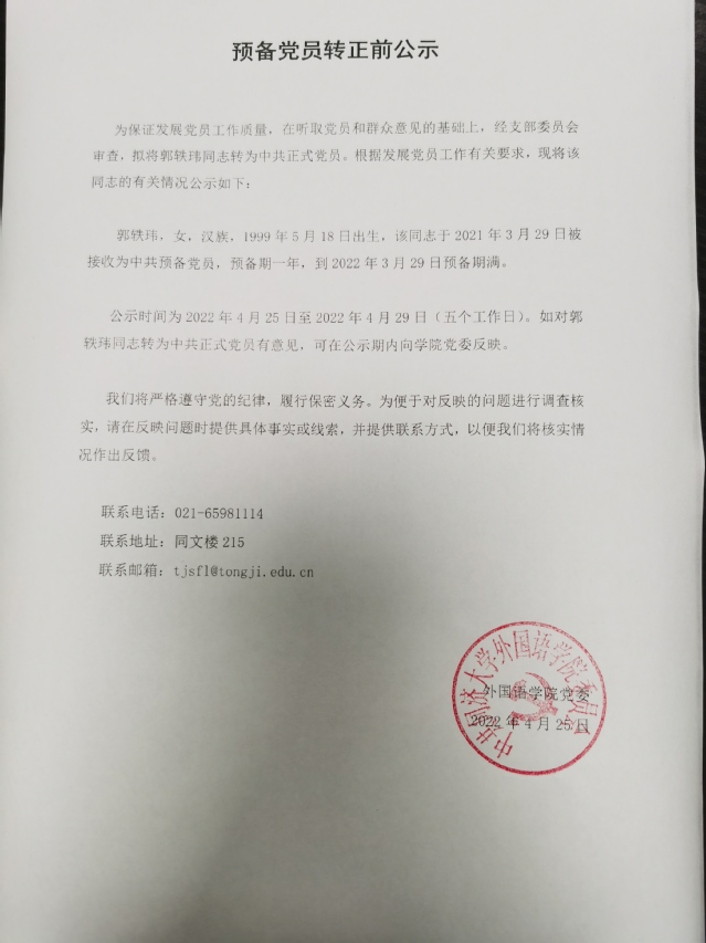 研究生第二党支部预备党员转正公示
